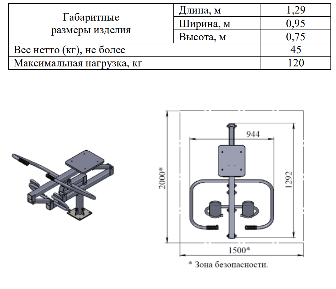 Каждый тренажёр комплектуется закладным элементом (металлический фланец размером 200x200x8 мм) и 4 болтами M18 для его крепления.