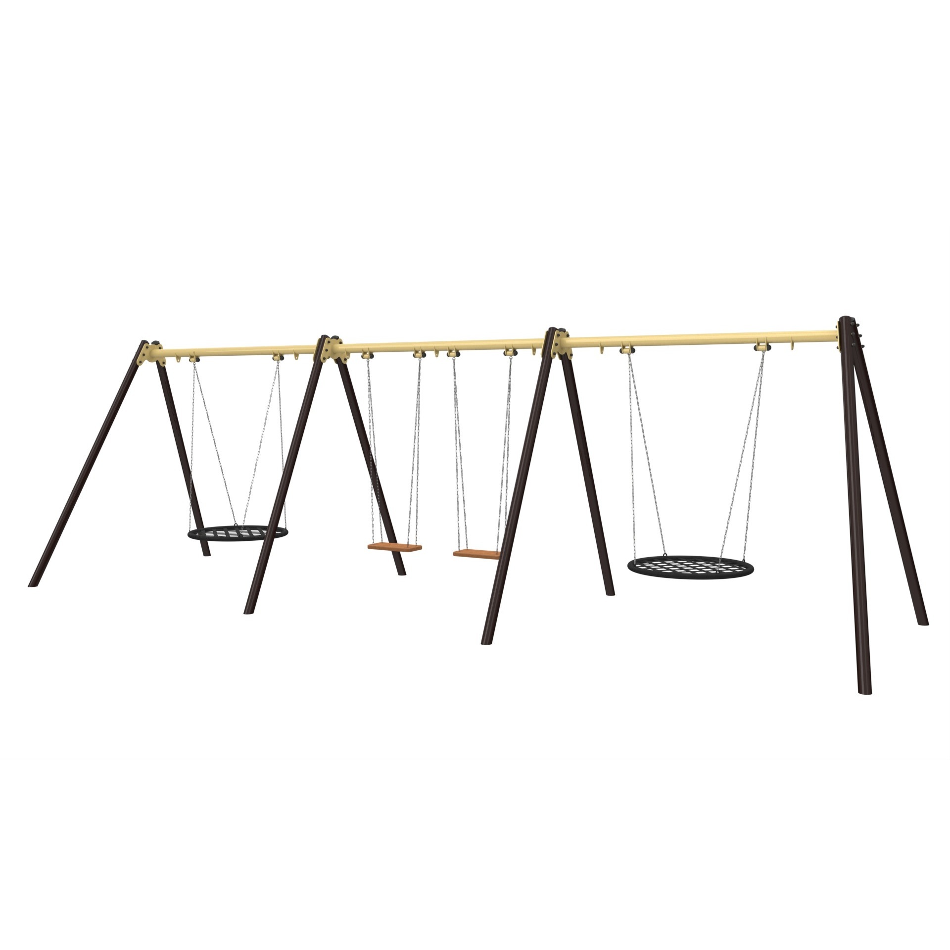 Преимущества: Идеальны для групповых игр на свежем воздухе. Просторное сиденье-«гнездо» одновременно вмещает от 2 до 4 детей, устраняя очередь и делая отдых более увлекательным.
