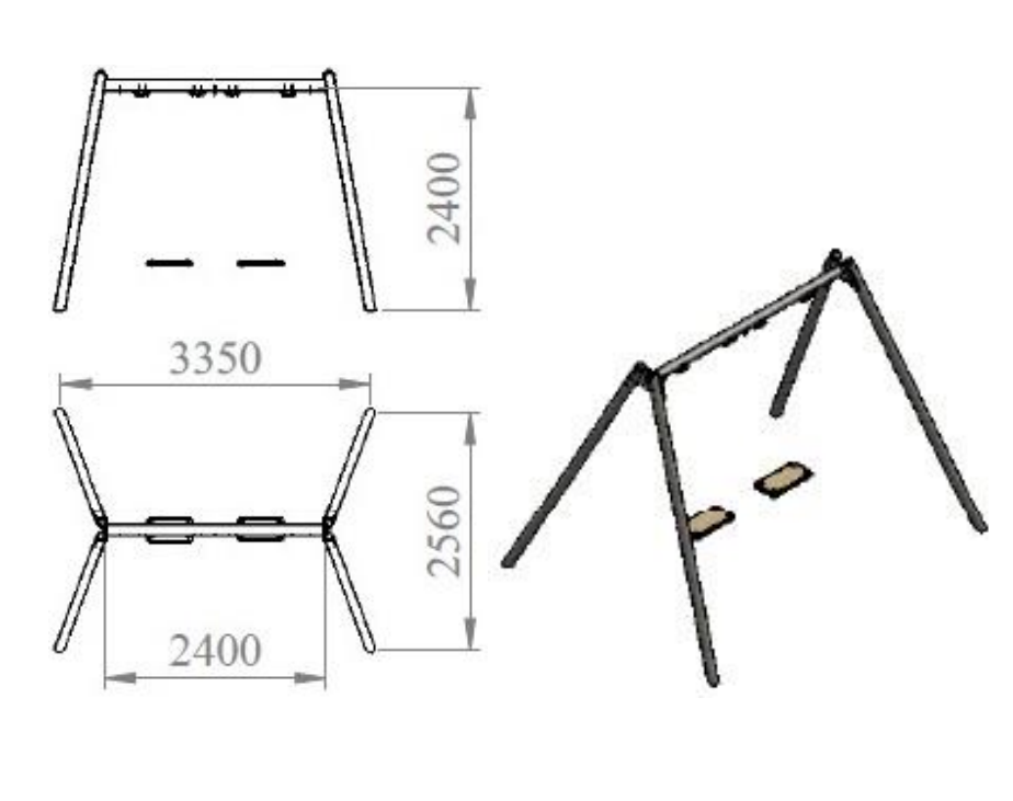 Детские уличные качели №21, двойные, 3350*2560*2400 мм.