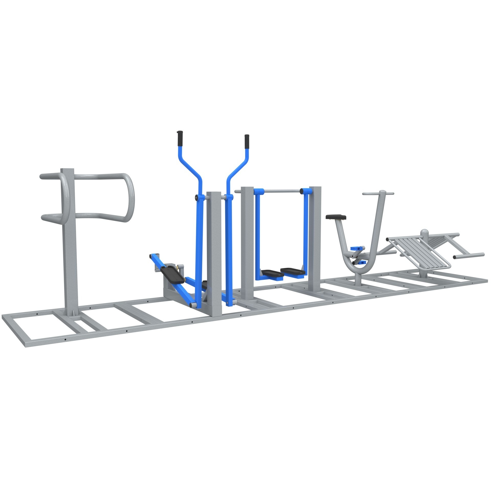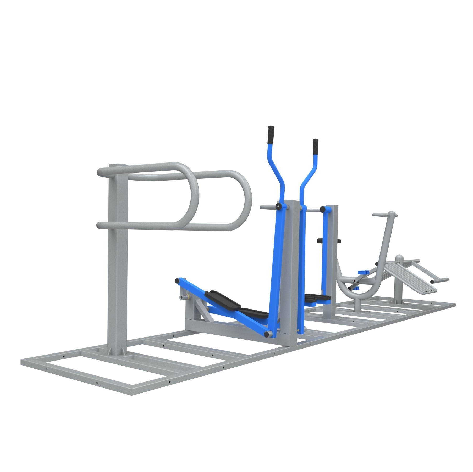 Комплекс монтируется на специальные пластины, что позволяет легко разместить его на любой подготовленной площадке с готовым покрытием. При необходимости конструкцию можно быстро переместить на новое место. Монтаж не требует бетонирования, что значительно упрощает установку.
