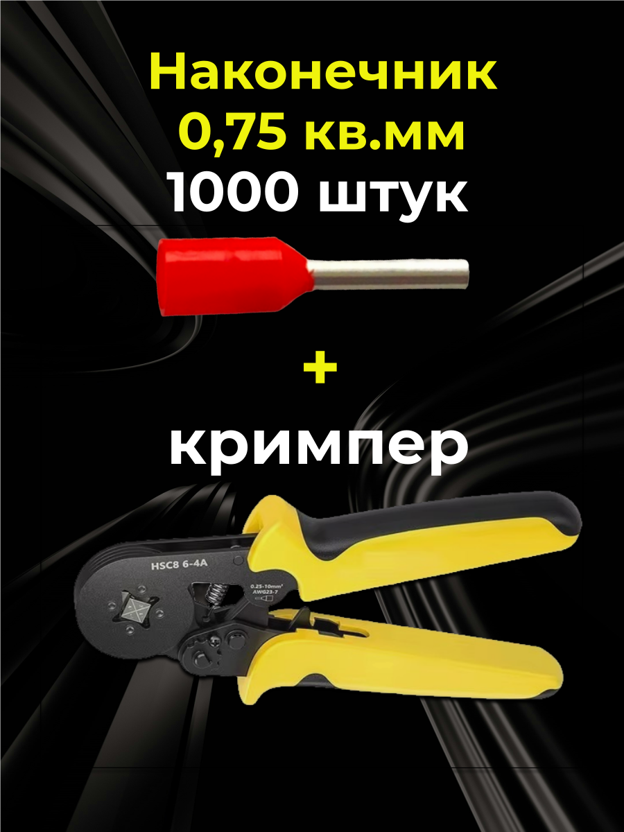 Набор с наконечниками НШВИ 0,75 кв.мм, красные, и пресс-клещи для обжима наконечников: надёжное соединение проводов под обжим.