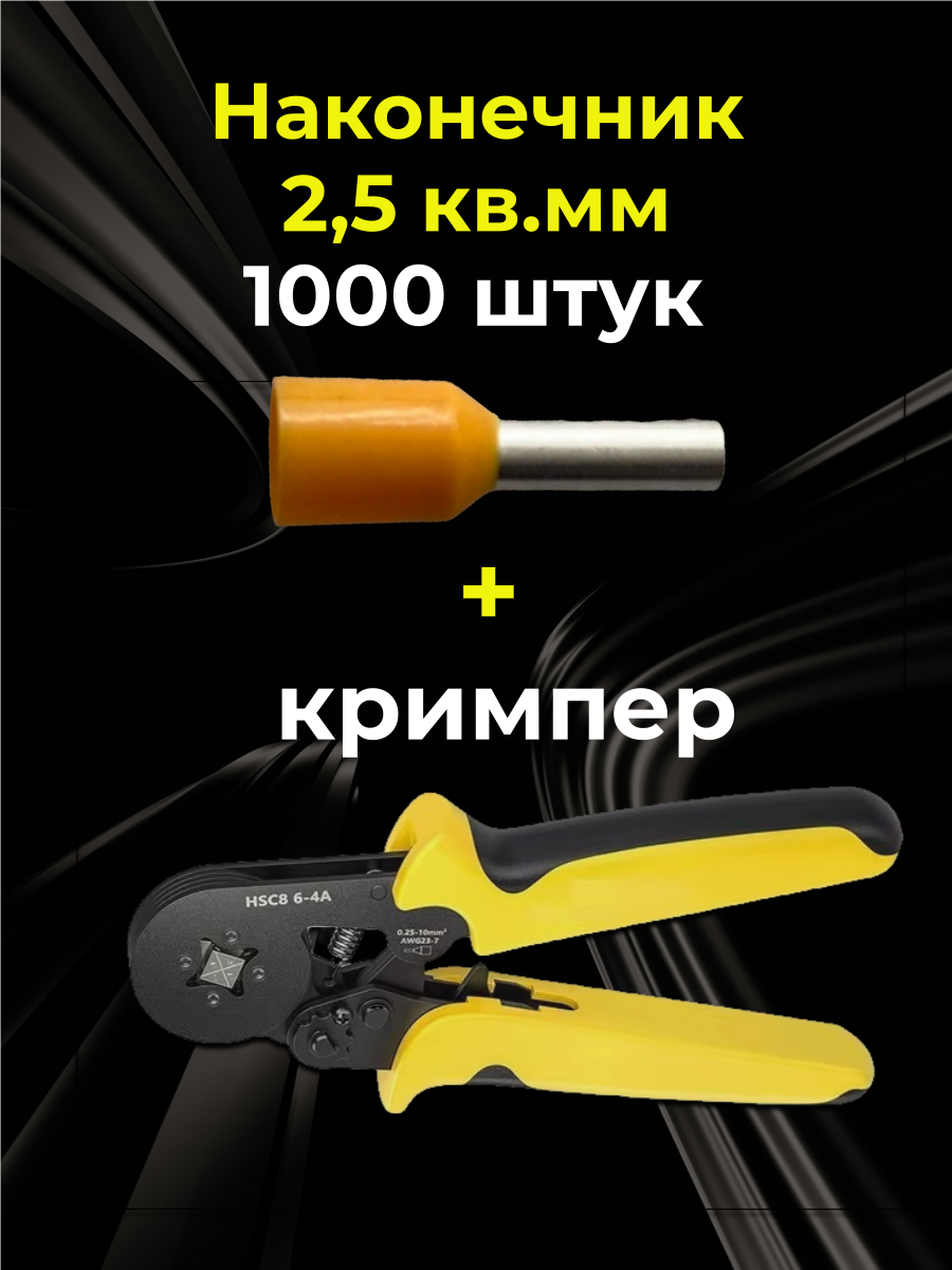 Набор с наконечниками НШВИ 2,5 кв.мм, оранжевые, и пресс-клещи для обжима наконечников: надёжное соединение проводов под обжим.