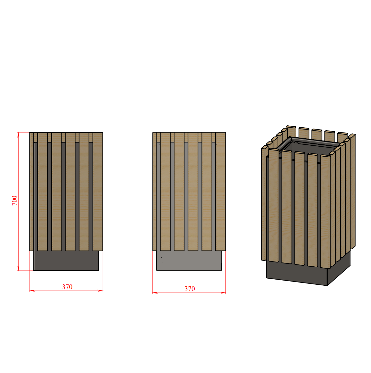 Долговечность: Комбинация оцинкованного или окрашенного металла и стойкой к гниению лиственницы делает урну пригодной для круглогодичного использования в любых погодных условиях.