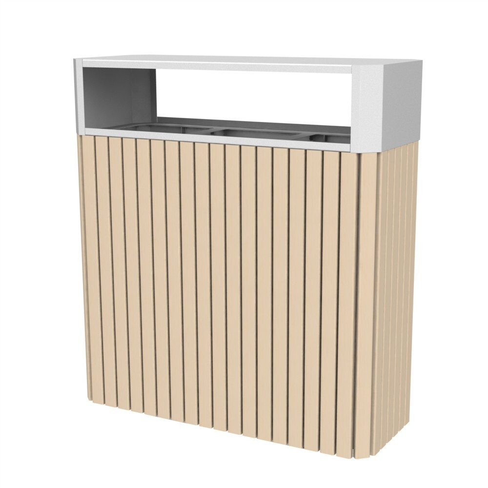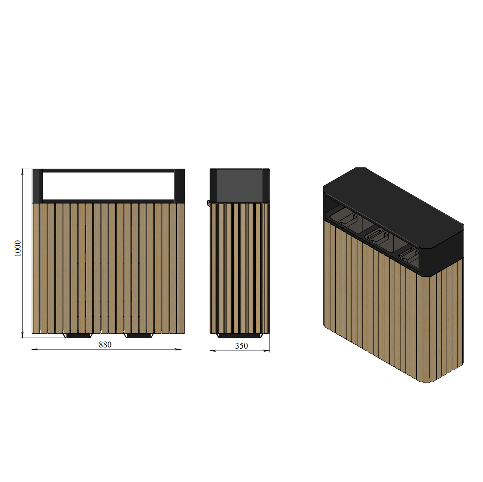 Долговечность: Комбинация оцинкованного или окрашенного металла и стойкой к гниению лиственницы делает урну пригодной для круглогодичного использования в любых погодных условиях.