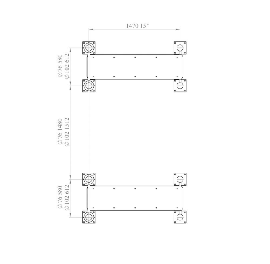 Комплекс скомпонован вокруг центральной стойки с турником и двух симметрично расположенных скамей.
