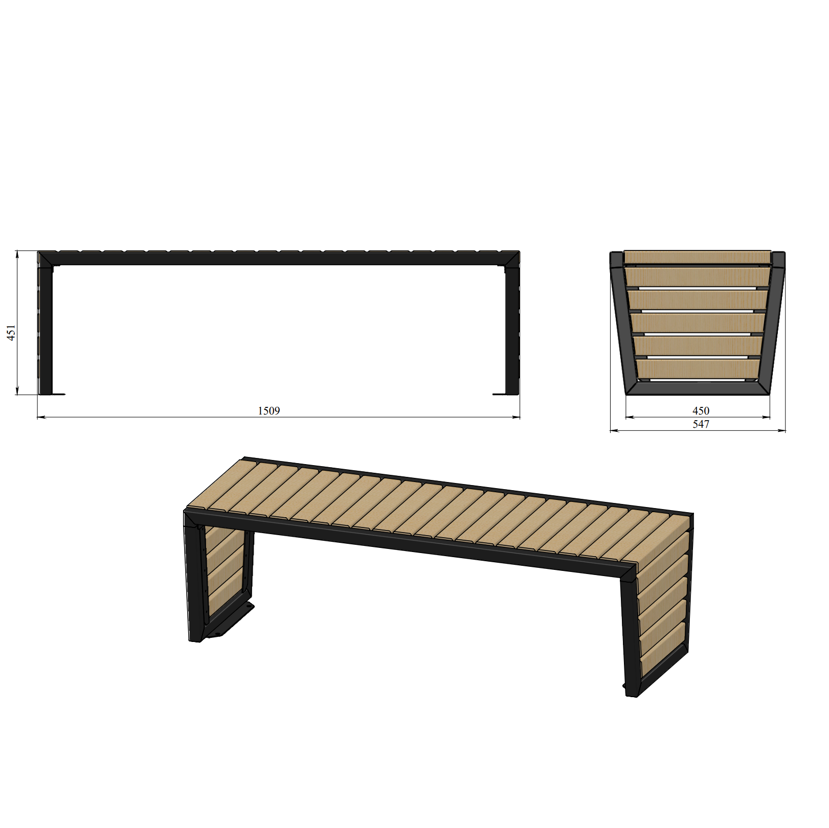 Скамья парковая PO-1509, 1509*547*451 мм., без спинки.