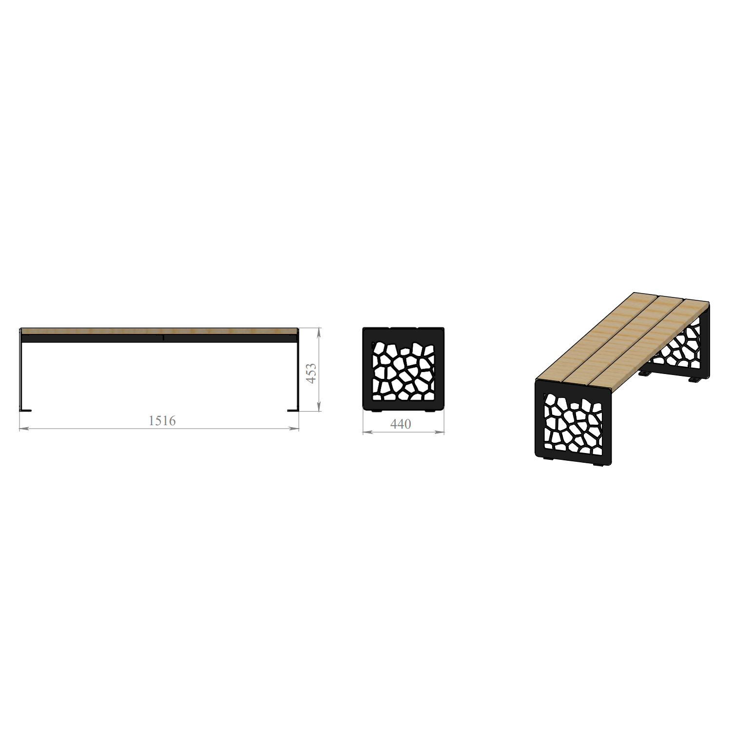 Скамья парковая PO-1515, 1515*440*453 мм.