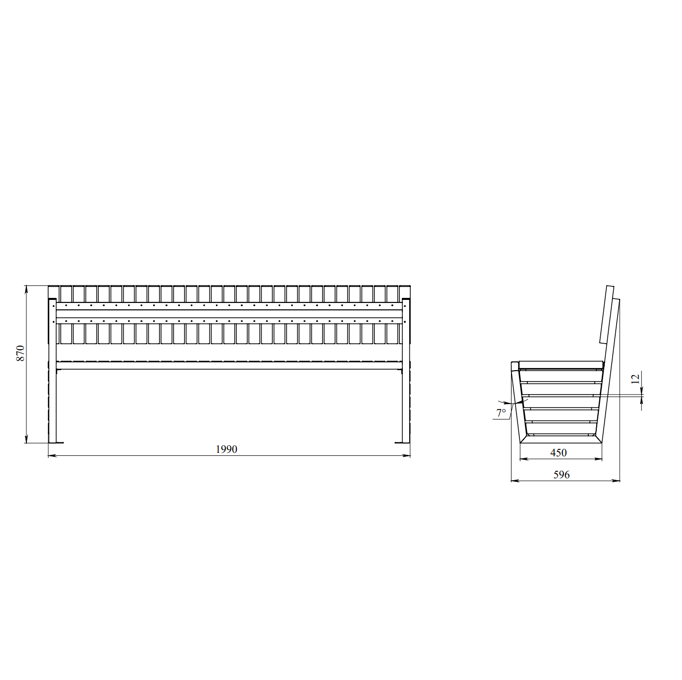 Скамья парковая PO-1990, 1990*596*870 мм., со спинкой.