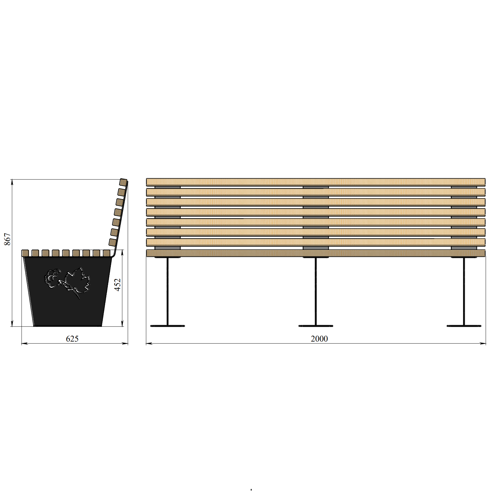 Скамья парковая PO-2002, 2000*625*867 мм., со спинкой и декоративными элементами.
