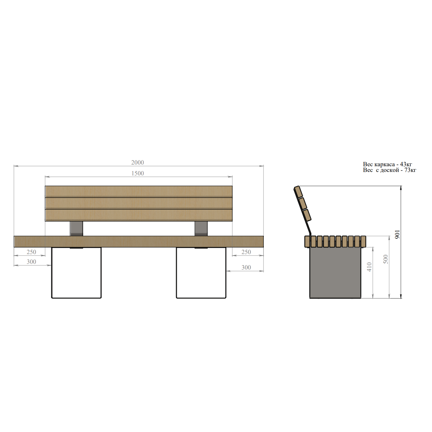 Скамья парковая PO-2003, габариты 2000*880*901 мм., со спинкой.