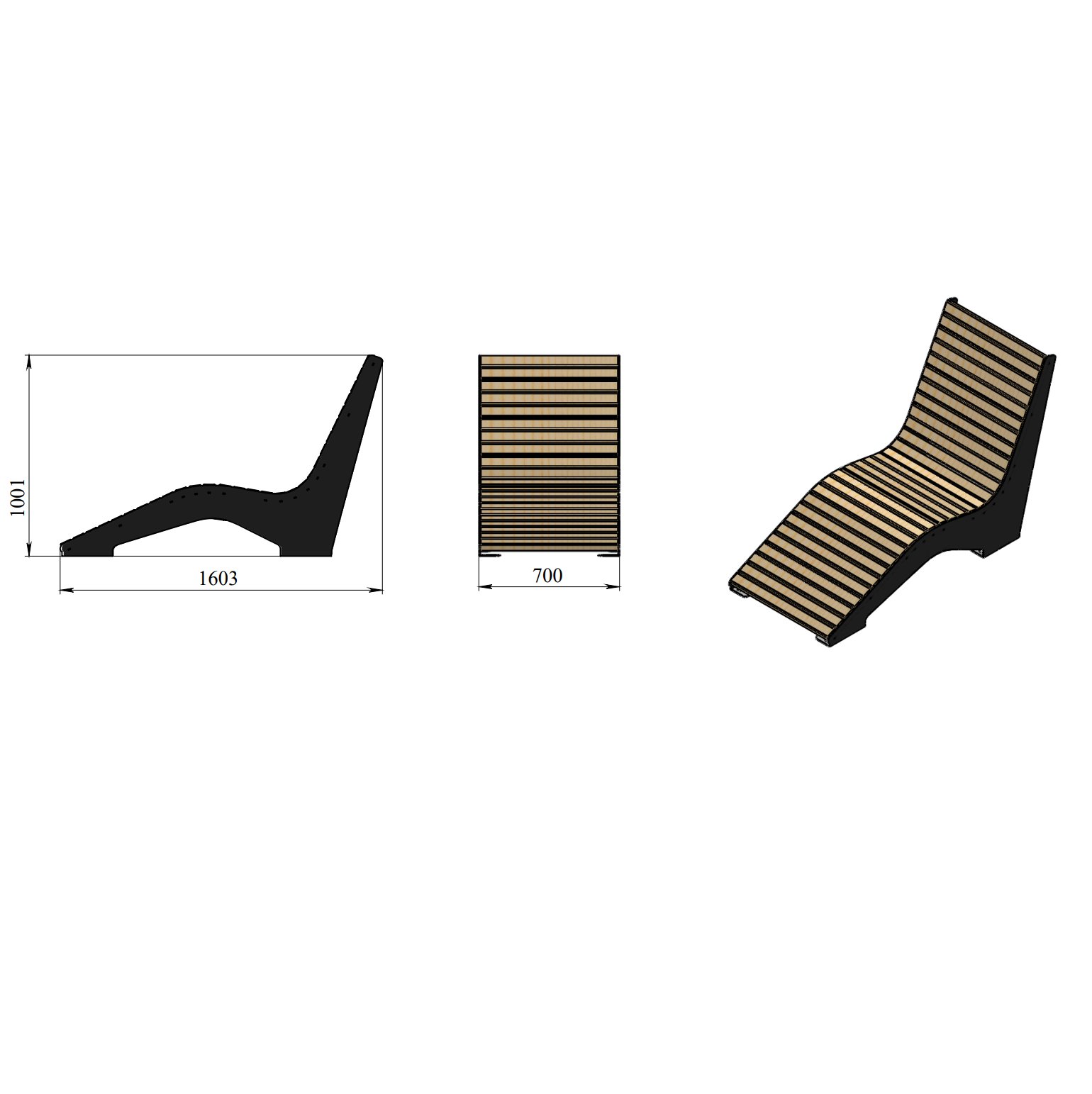 Скамья парковая, шезлонг PO-1603, габариты: 1603*700*1001 мм..