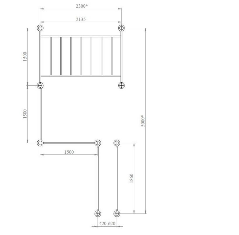 Все элементы регулируются по высоте с помощью хомутовой системы