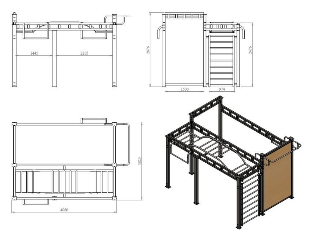 Уличный атлетический комплекс №3, 4100*3100*2900 мм.