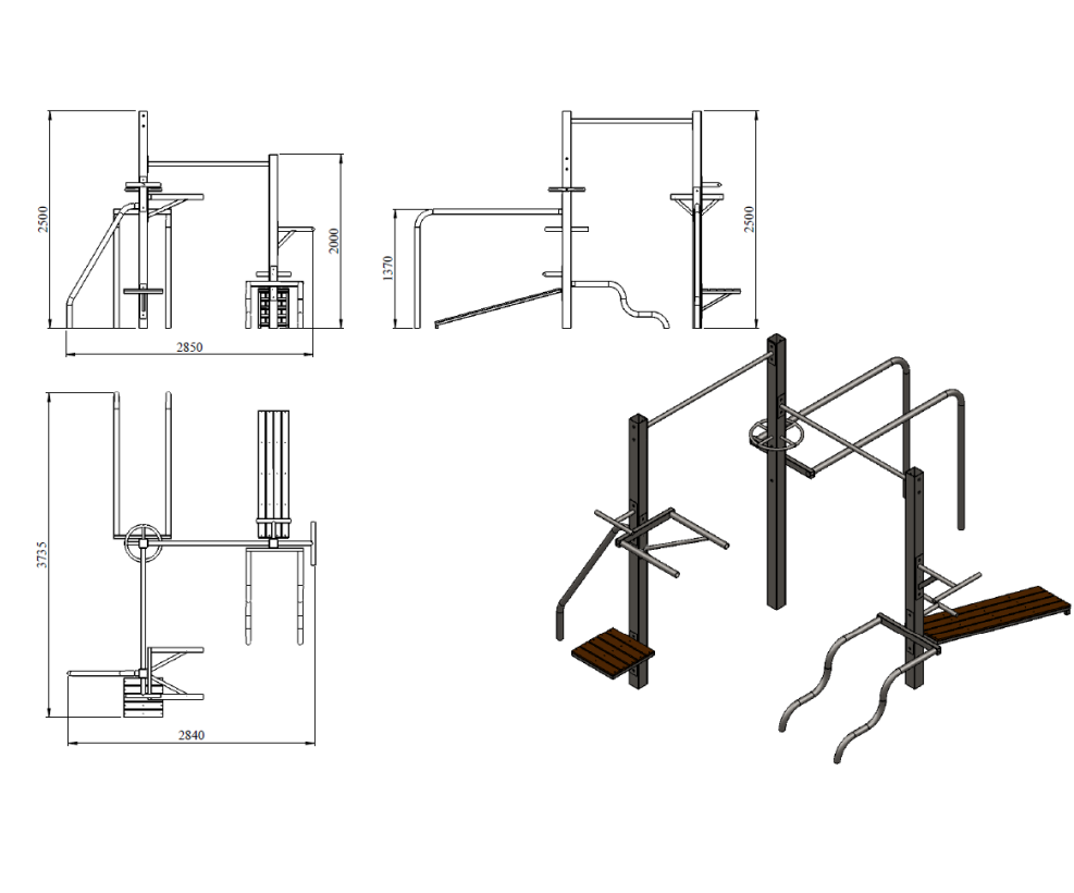 Данный спортивный комплекс предназначен для развития силы хвата, общей физической подготовки и комплексной проработки мышц верхней части тела. Его компактная конструкция идеально подходит для установки на территориях с ограниченным пространством, превращая даже небольшой участок в полноценную спортивную зону. Комплекс отлично подходит для тренировок взрослых и подростков.