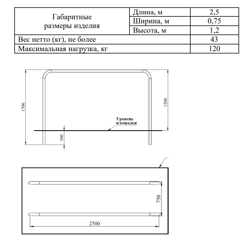 Уличный тренажер №70, брусья параллельные.