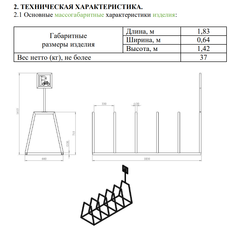 Велопарковка №22,на 5 мест, 1830*640*1420 мм.