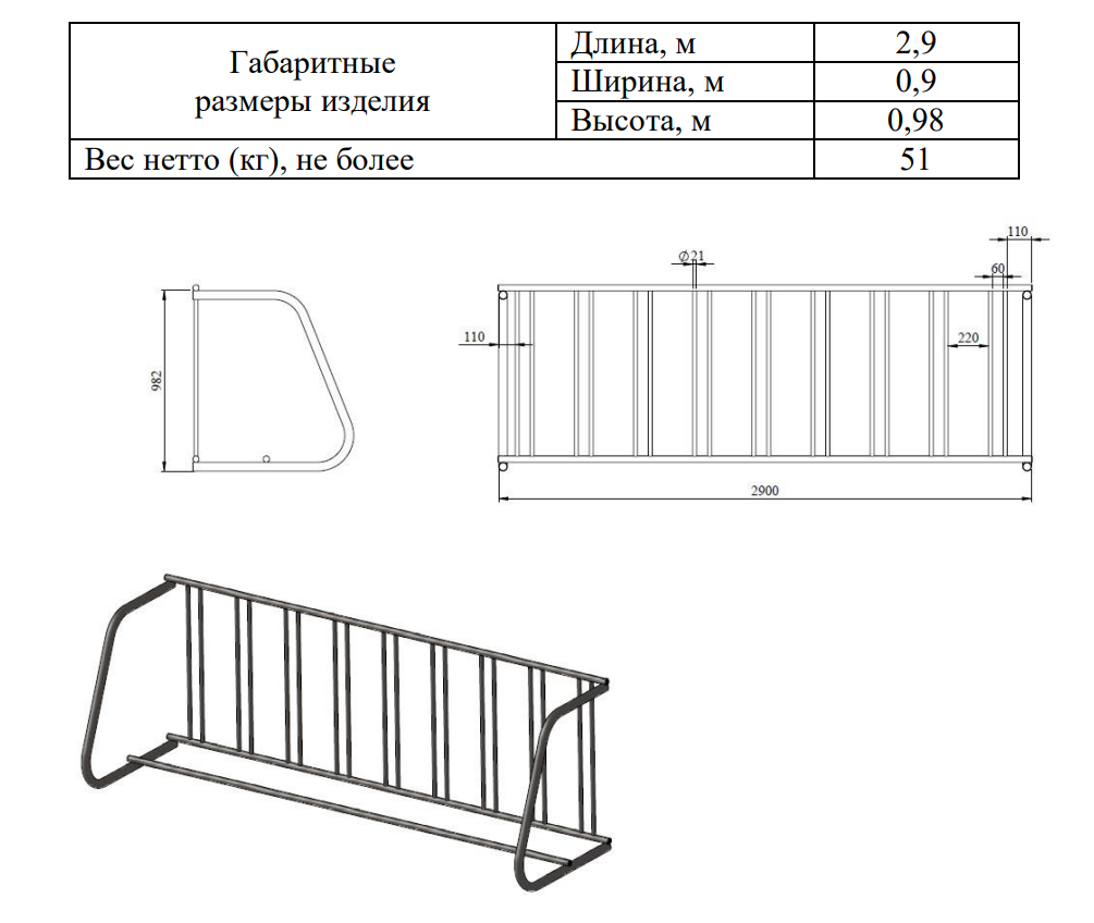 Велопарковка №41, на 9 мест, 2900*900*980 мм..