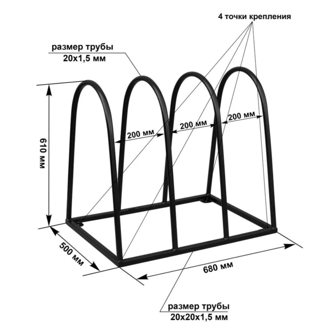 Велопарковка №52, на 3 места, 680*500*610 мм.