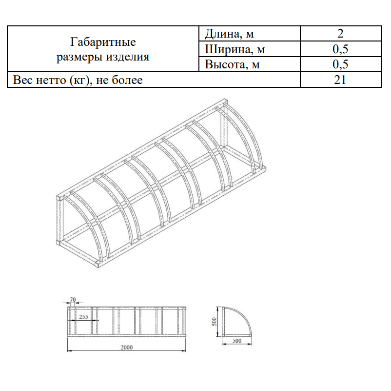 Велопарковка №56, из нержавеющей стали, на 6 велопарковочных мест, 2000*500*500 мм.