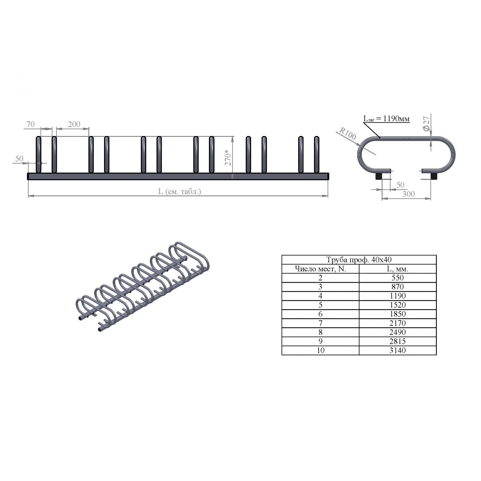 Велопарковка №59, из нержавеющей стали, на 5 мест, 1520*610*270 мм.