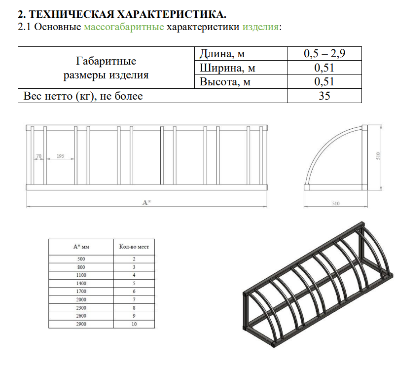 Вместимость: стандартно на 6 велосипедов. Возможно изготовление от 2-х до 10 мест.