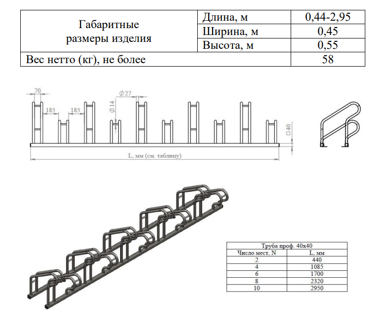 Велопарковка №72, на 4 места, 1090*450*550 мм., из нержавеющей стали.