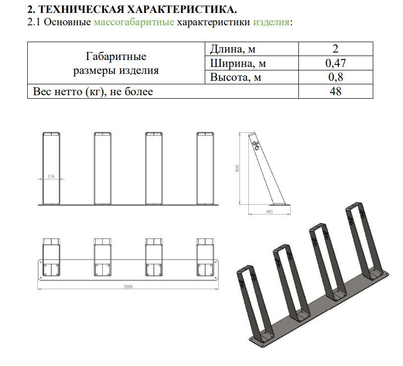 Велопарковка №20,на 4 места, 2000*470*800 мм.