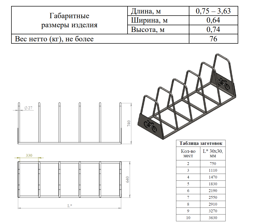 Велопарковка №33, на 6 мест, 2190*640*720 мм.