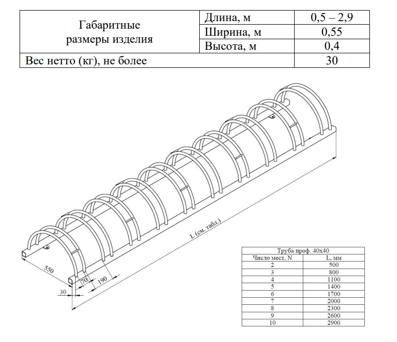 Велопарковка №35, на 10 мест, 2900*550*400 мм.