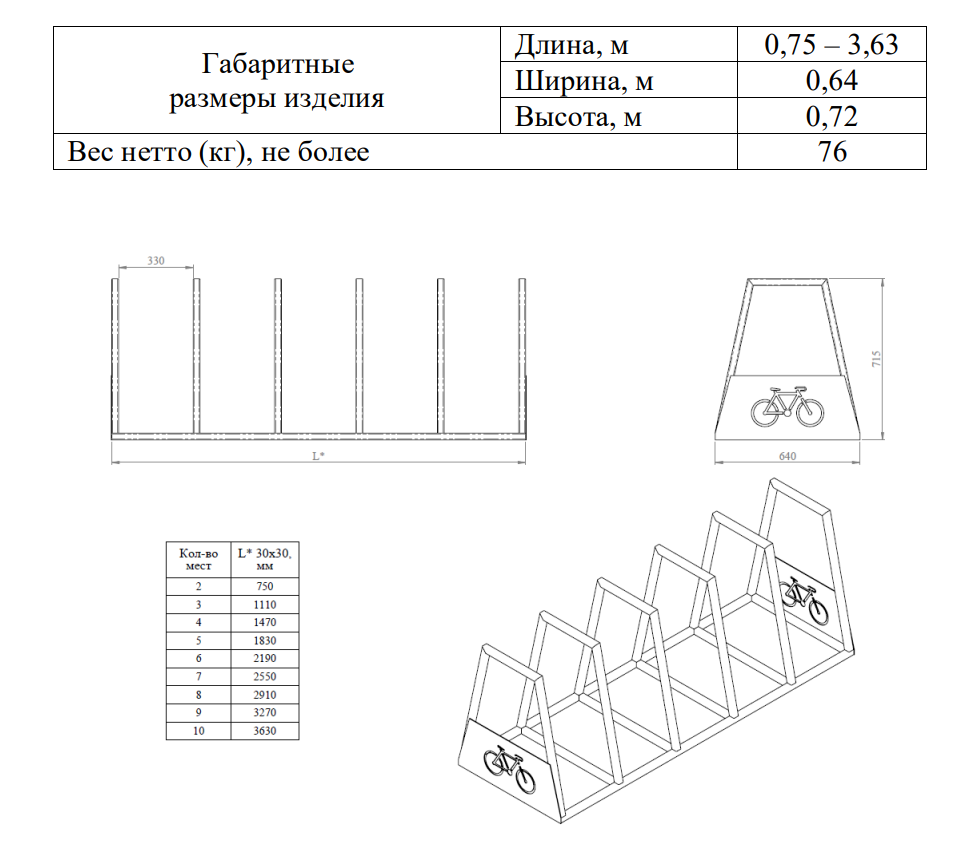 Велопарковка №34, на 6 мест, 2190*640*720 мм.