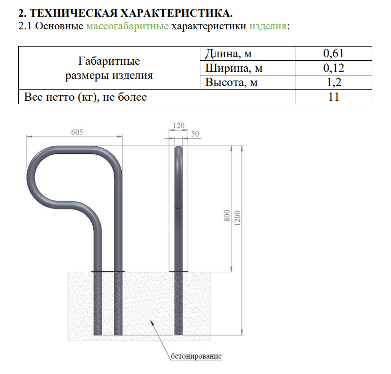 Велопарковка одиночная №17, 610*120*1200 мм.
