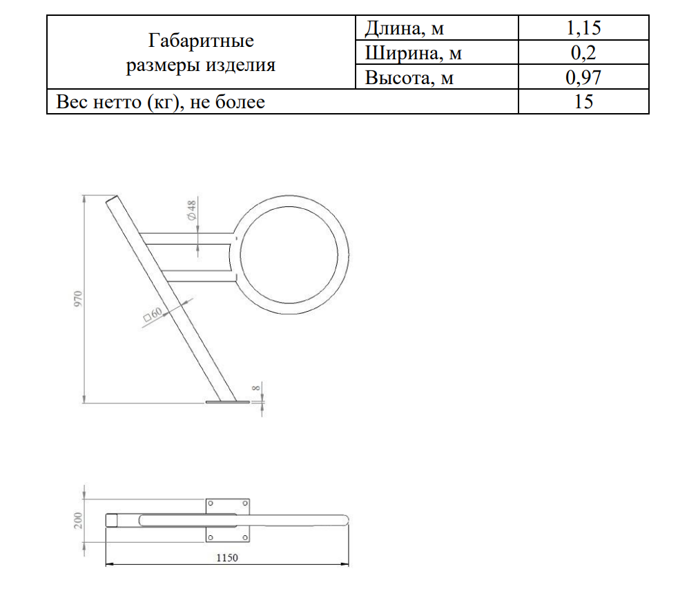Велопарковка одиночная №38, 1150*200*970 мм.